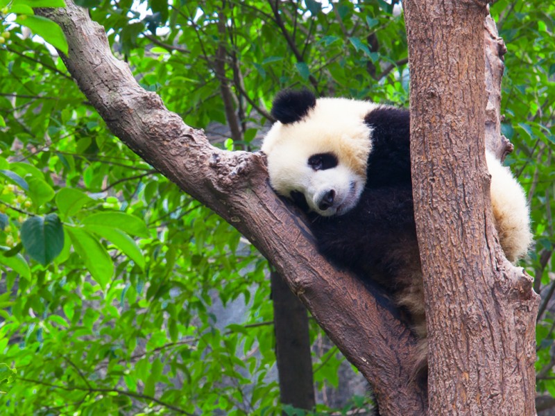 2. See giant panda of different ages from baby to young to adult, at the status of eating, playing, climbing and sleeping