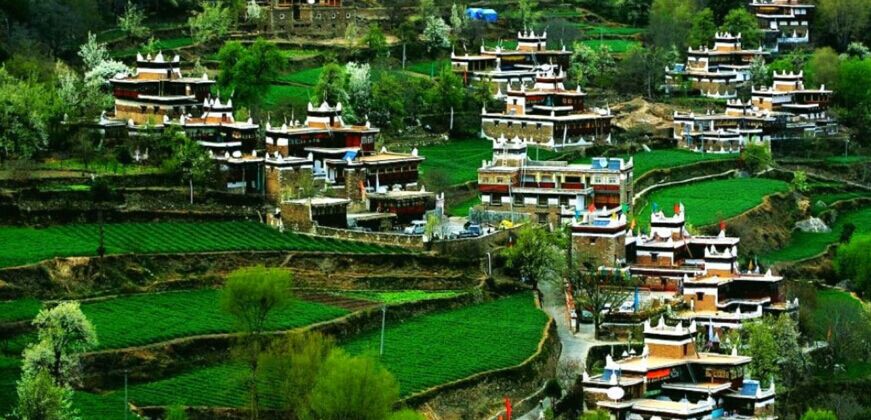After breakfast tourists farewell to Moxi Town in the morning haze, look back the splendid Er’lang Mountain, recall the charming Hailuo, pass Kangding (the town of love songs), climb over Zheduo Mountain (4298 M, the natural boundary between Tibetan area and Han area, and arrive at Xinduqiao (paradise of photography), to appreciate he natural landscape. Xinduqiao is like a picturesque Shangri-La. The wonderful sunlight, the boundless grassland, the winding brook, the rows of poplar trees which will show different colors based on different seasons, the continuous mountains, the Tibetan villages, and the stocks grazing peacefully…… The beautiful plain scenery in west Sichuan makes it to be the “world of sunlight and shadow” attracting photographers. Then tourists will pass by Tagong County. “Tagong” means the place even the fairy do not want to leave. It is said that when Princess Wencheng brought with the scripture of 12-year-old Sakyamuni and passed by here, but she failed to take him away. Finally she had to build Tagong Temple there and brought another Buddha scripture from Chang’an to Lhasa. They can go to visit “Dazhao Temple”—Tagong Temple (ticket of CNY 20 per person, not included), see 12-year-old Sakyamuni, see unique Suyou Flower planted by Princess Wencheng in Tibetan area and spin the prayer wheel with happiness and faith, to experience the firm faith and sincerity of believers far from here. Tourists can feel the rich Tibetan Lama folklore, play on Tagong Grassland, enjoy the grassland scenery and view Yala Deity Mountain (AKA Muya Deity Mountain) covered by snow all year round. After that they can view Huiyuan Temple from the car, pass by Bamei, and appreciate Donggu Natural Plant Scenic Spot (more than 10 KM long) during the trip. Inside the scenic spot, vegetation appears different according to the altitude. The can also see Red Stone Area, enjoy beautiful red poplar woods and arrive at Danba (the country of watchtowers) in the evening.