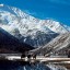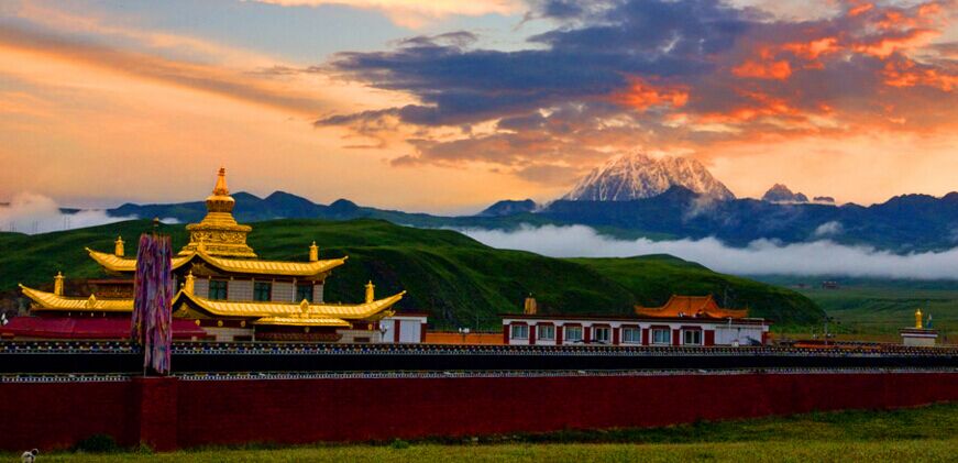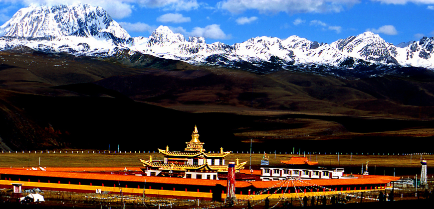 Tourists can get up early to take photos of Jiaju Tibetan village in morning haze. After breakfast they leave Jiaju, see Suopo Watchtowers across Dadu River, then along Yak Valley, they come to Bamei to appreciate the quiet Bamei grassland landscape and Bamei forests. After that they will arrive at Tagong grassland to enjoy the south wall of Yala Deity Mountain, visit the Monument made by gold in honor of Master Banchan, and Tagong Temple. Yala Deity Mountain in Tagong rises from the grassland, splendid, covered by snow all year round, surrounded by clouds, set off boundless grassland and golden Tagong temple, which present a picturesque plateau landscape.