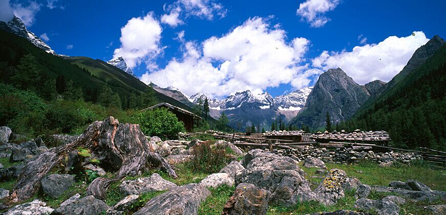 After breakfast, tourists will be guided to Maobiliang to enjoy the whole view of Mount Siguniang, and visit Shuangqiao Valley scenic spot. Mount Siguniang scenic spot is combined by Shuangqiao Valley, Changping Valley and Haizi Valley. Shuangqiao Valley is over 30 KM long, which is the earliest developed valley with the most complete infrastructure. The scenic spot are mainly snow-capped peaks, pasture, meadow and forests, which is the most beautiful valley in Mount Siguniang. Tourists can visit Shuangqiao Valley for around 3 hours, after that they can go to the most beautiful Tibetan village in Danba–Jiaju Tibetan village, after passing by Xiaojin, to appreciate the architecture of Tibetan Jiarong. They can stay at Jiaju Tibetan village at night,