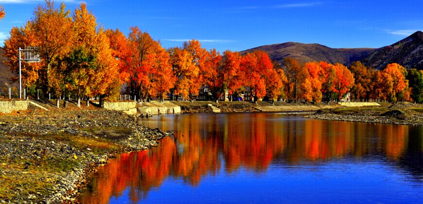 Xinduqiao is regarded as the paradise of photography. Its beauty is not in Xinduqiao itself, but in the following three routes: Xinduqiao–Tagong, Xinduqiao–Jiagenba–Xinduqiao–Zheduo Mountain. On the road, there are winding rivers, meadow with all kinds of flowers in summer or golden poplar trees in autumn, unique Tibetan building and wonderful shadow reflected from the clouds. Here you can also see from the long distance the most beautiful Snow Mountain–Gonka Snow Mountain. This is the paradise of photography, Xinduqiao. According to the time of sunrise, tourists can go to a special site arranged by our club to take photos in the morning, after that they can climb over the last mountain–Zheduo Mountain (4298 M), and arrive at Kangding, the town of love songs. Then tourists can go to Hongshitan Park, which is a paradise of red. Tourists can take photos around 1 hour here and will be guided to Qingren Lake by walking 20 minutes. At night tourists can enjoy the authentic wild hot springs bubble.