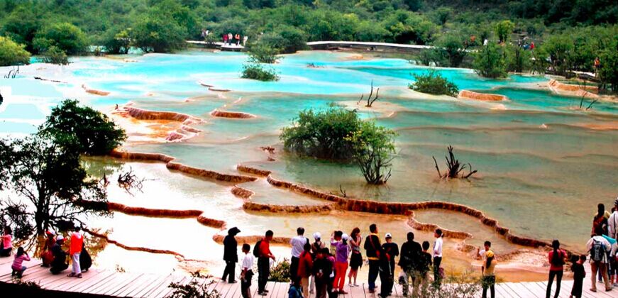 7:00 a.m. After breakfast at the hotel you’ll be driven to Huanglong via the scenic Mt. Xueshanliangzi (4200m).