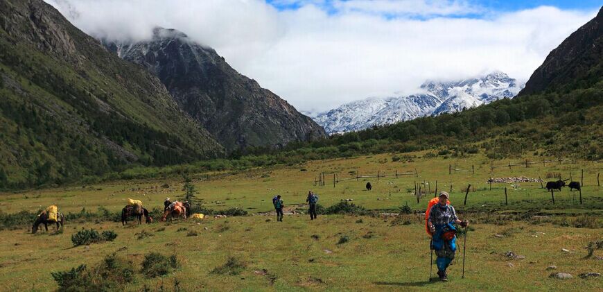Hike through the luxuriant forests and wild meadows, till reach to the Konka Monastery (3740 m). Stay overnight in tent or monastery. Trekking about 5-6 hours today.